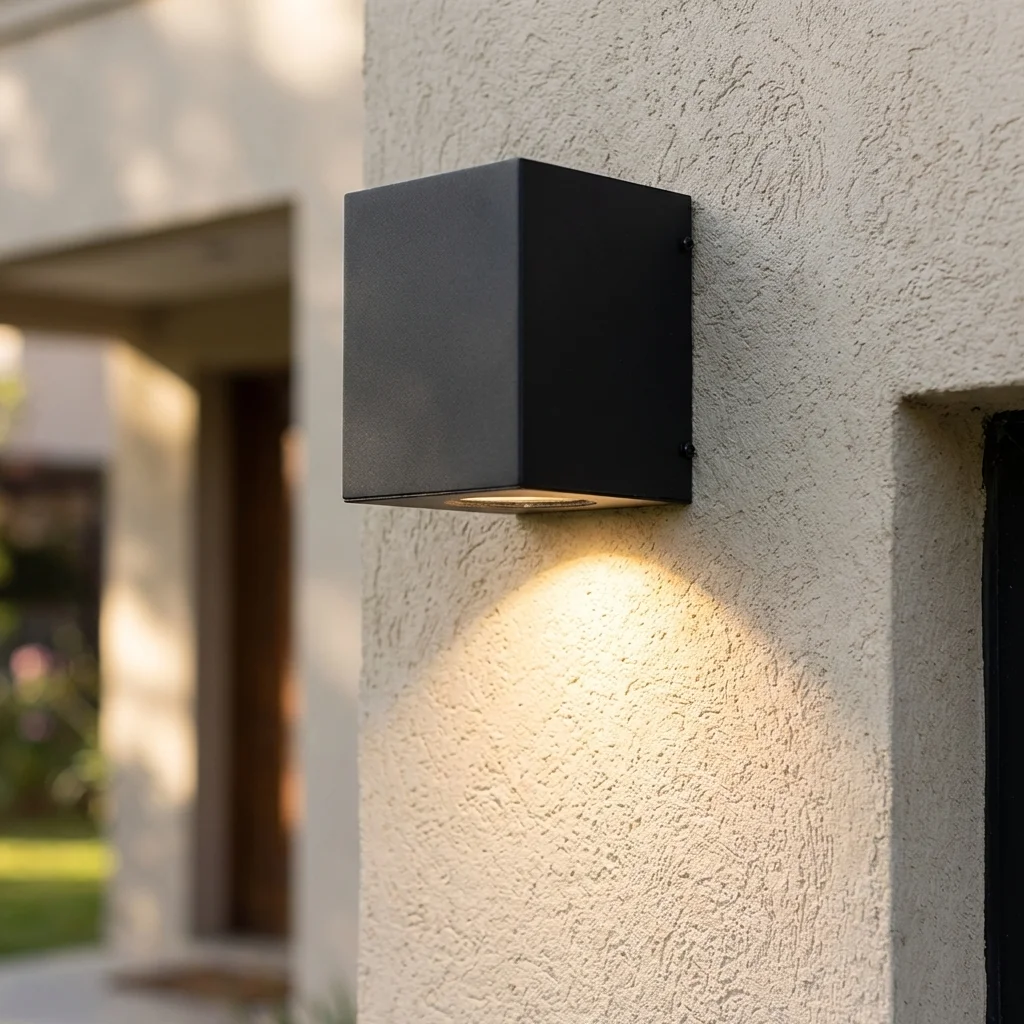 Aplique Ext. Levanto — Cubo moderno hierro GU10
