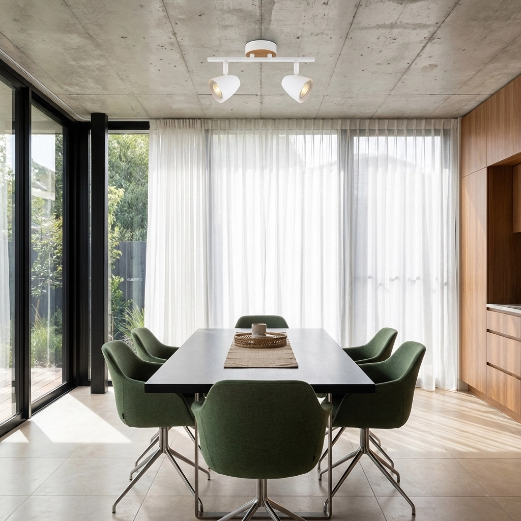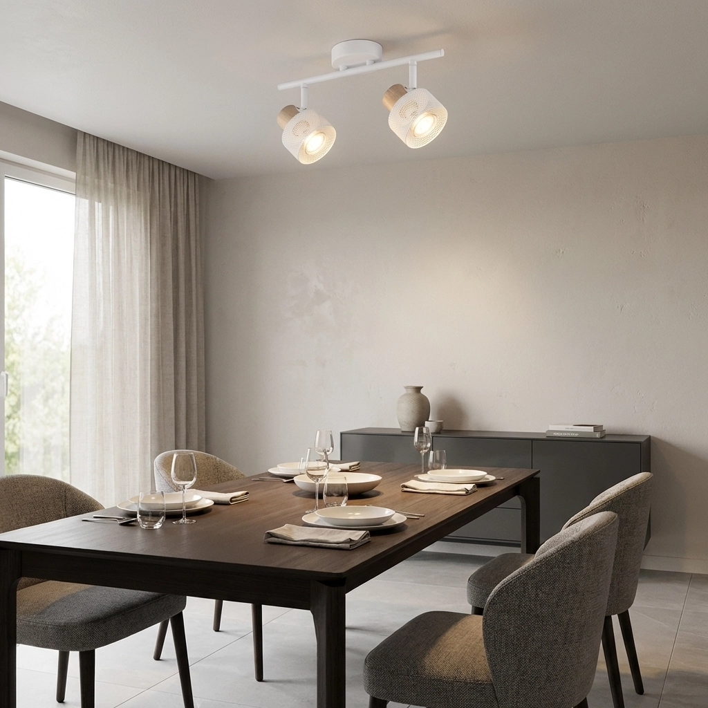 Plafón Hackney — Doble acero blanco detalle madera GU10