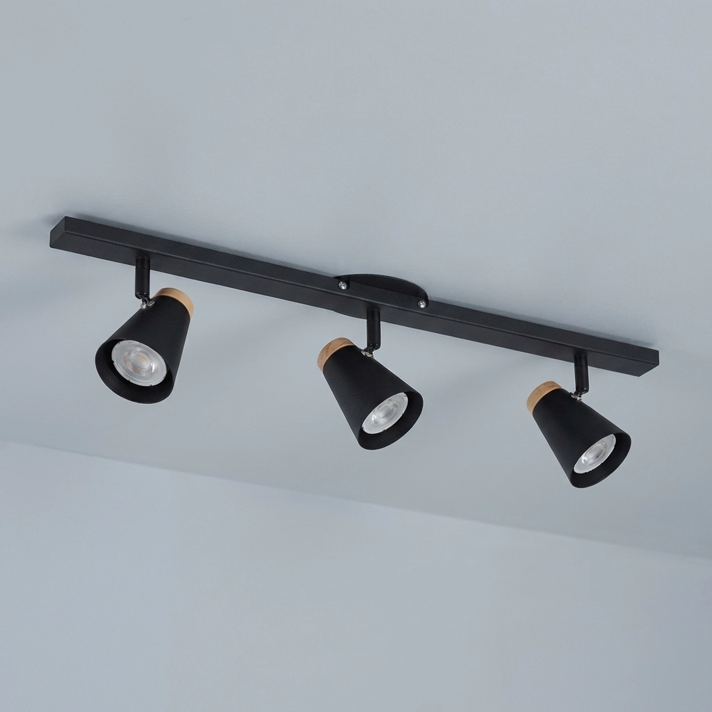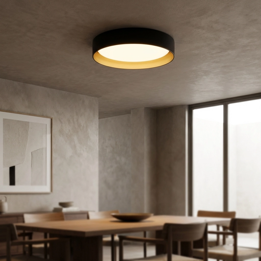 Plafon Brünn — Triple metal negro, acento cromo (LED)