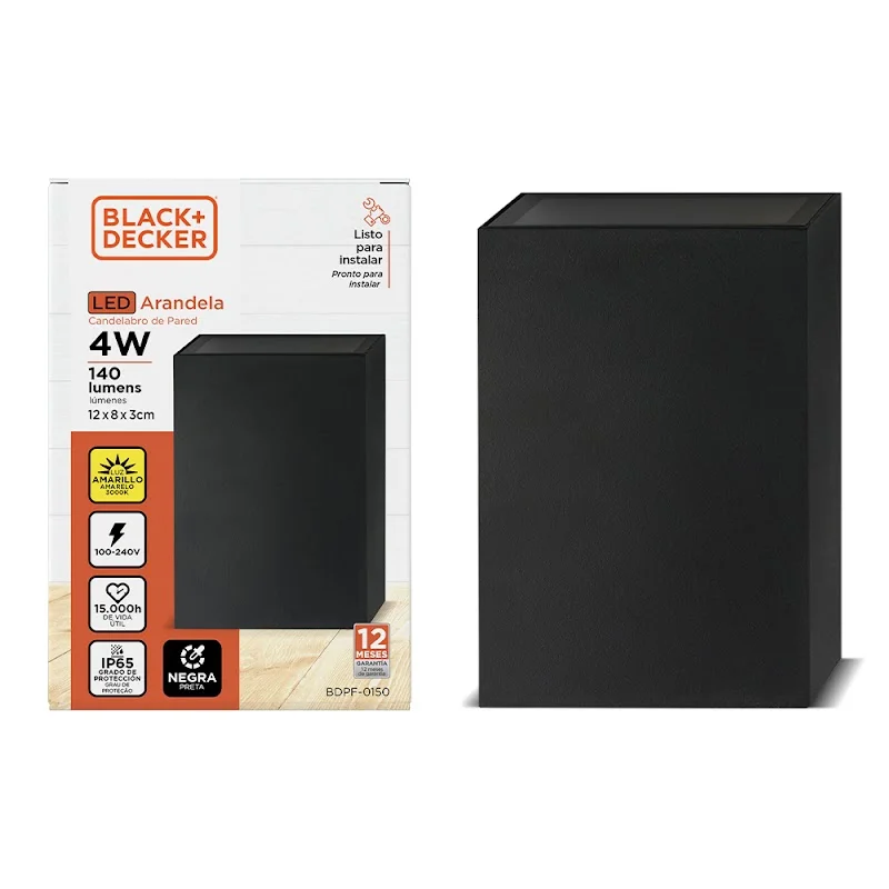 Aplique de Pared Led 4w Negro Luz Cálida IP65