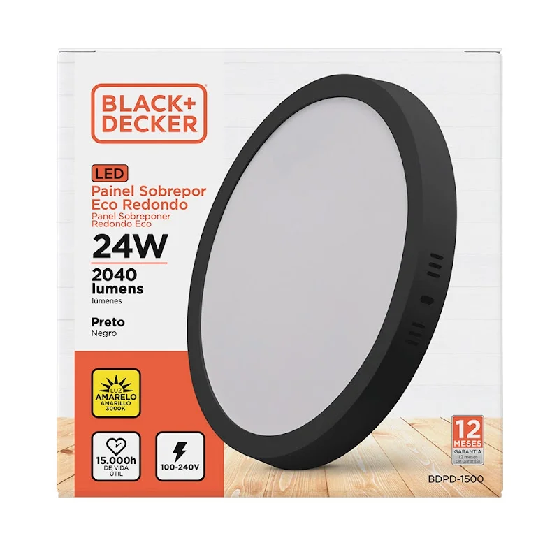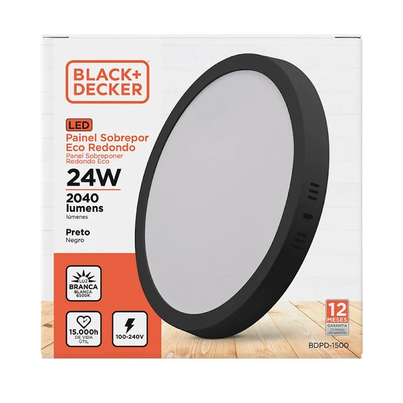 Plafón de Sobreponer 24w Negro Redondo Luz Fria