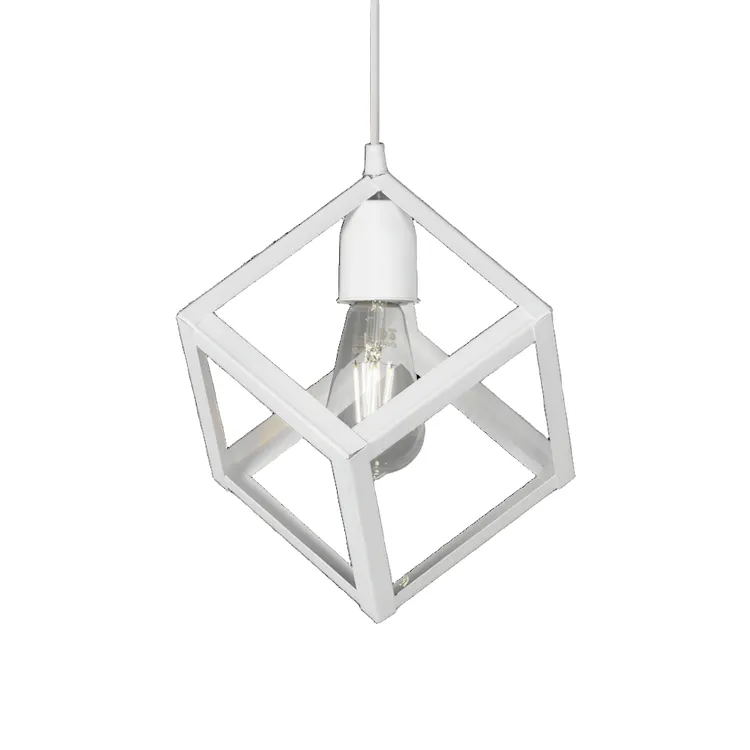 Lámpara Colgante CUBO Moderna | Diseño Geométrico | Metal Blanco | Ideal Living, Comedor, Dormitorio | 230x295mm
