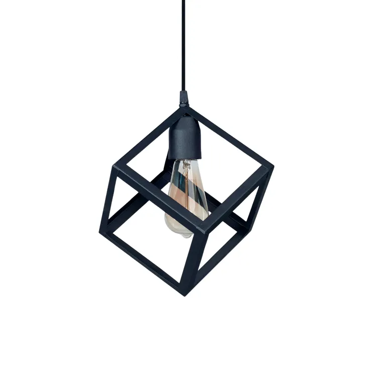 Lámpara Colgante CUBO | Diseño Industrial | Metal Negro | Ideal para Cocina, Comedor, Dormitorio y Living | 230x295mm