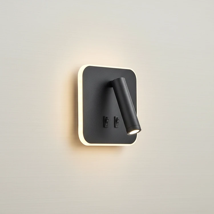 Apliques de Pared LED 7W+3W | Luz Cálida 3000K | Interruptor | Negro