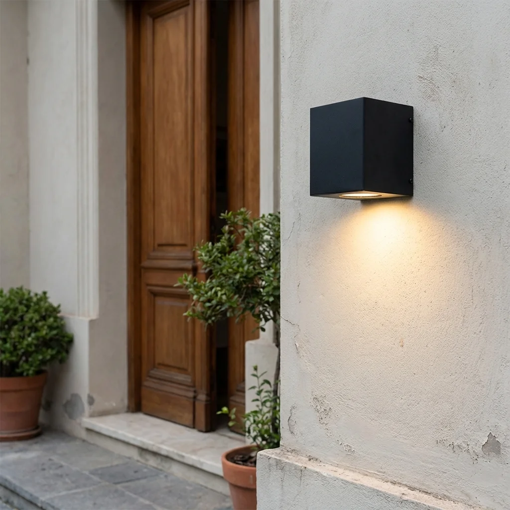Aplique Ext. Levanto — Cubo moderno hierro GU10
