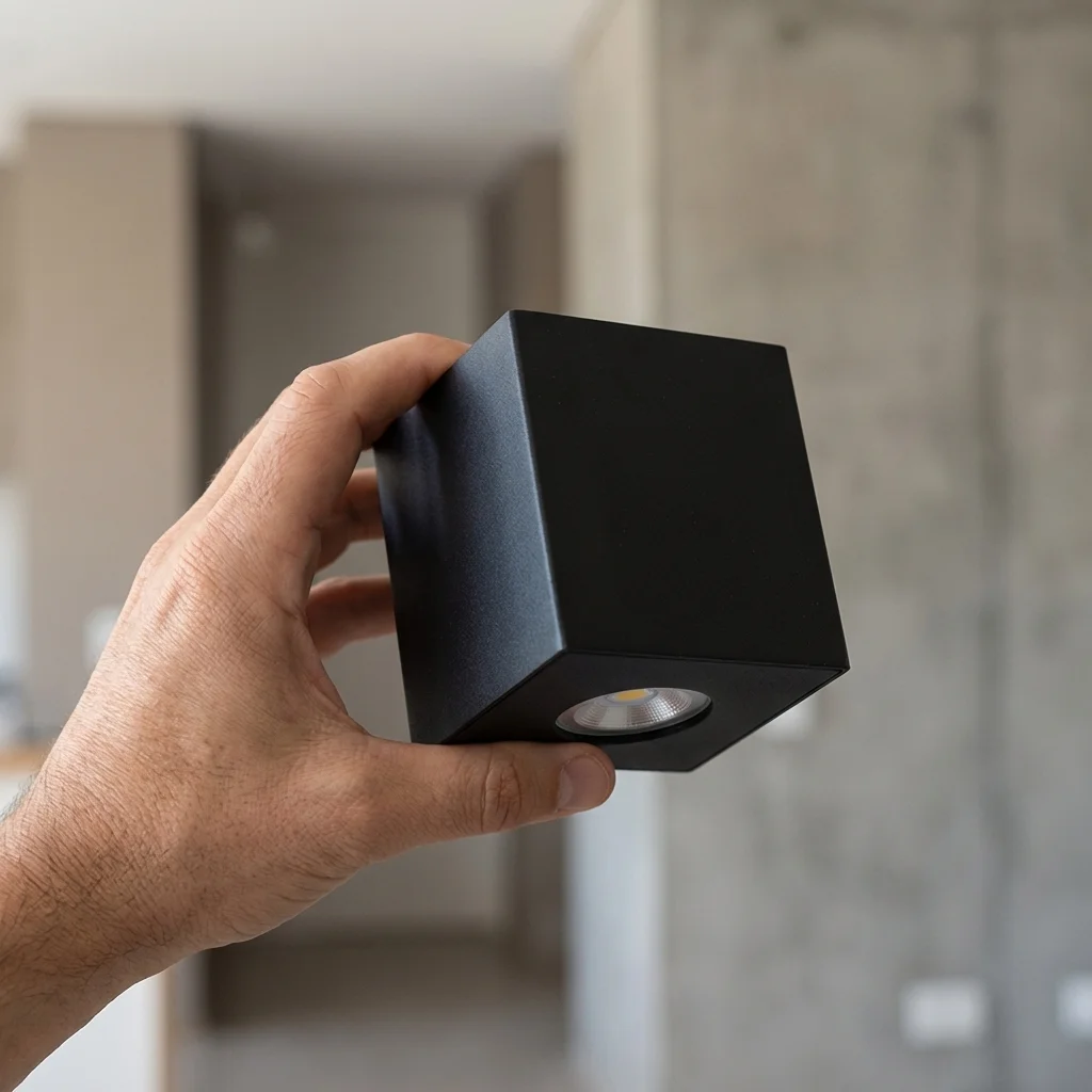 Montaje directo a pared exterior. Caja estándar. Electricista lo instala en 15 minutos.