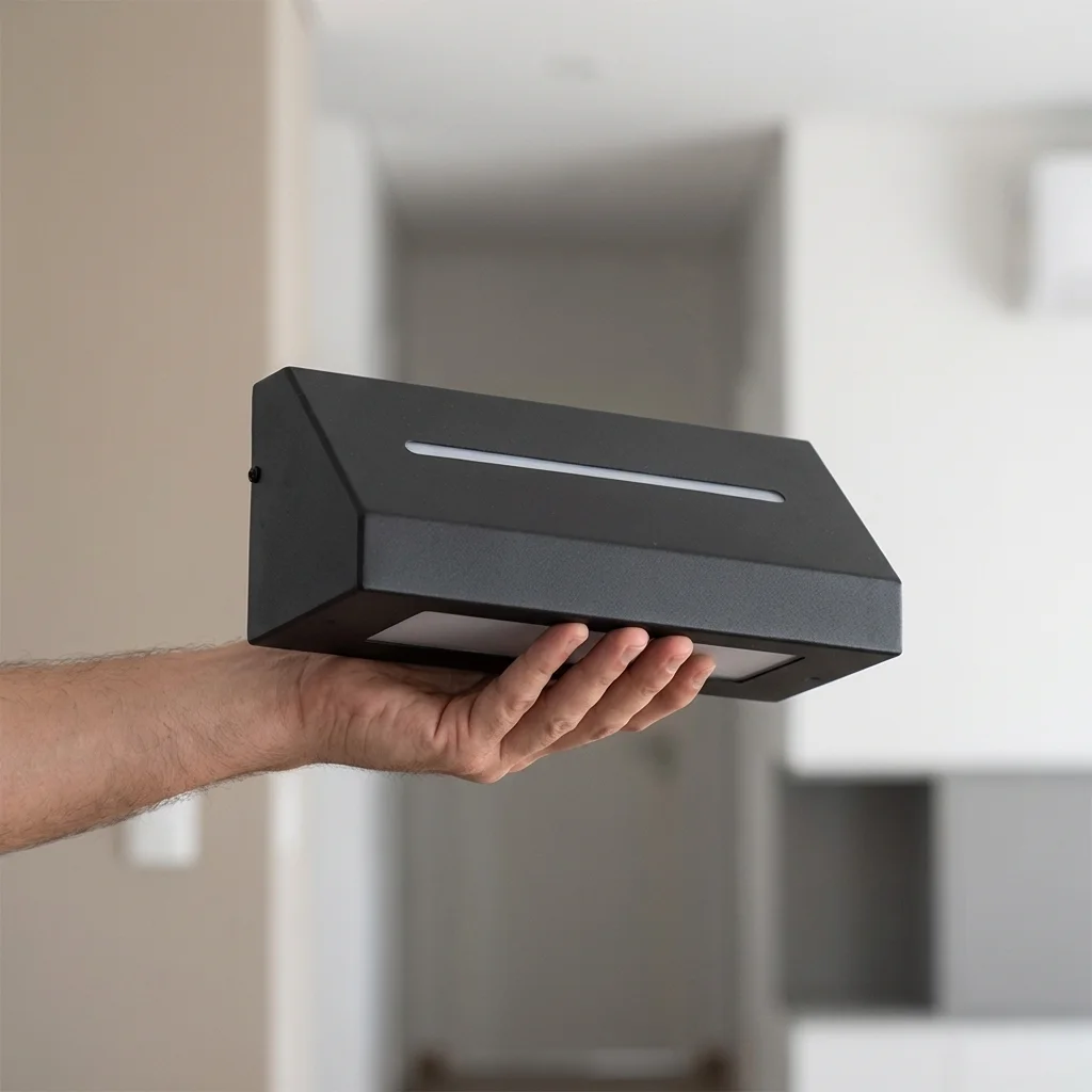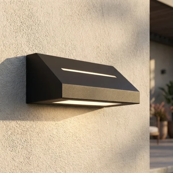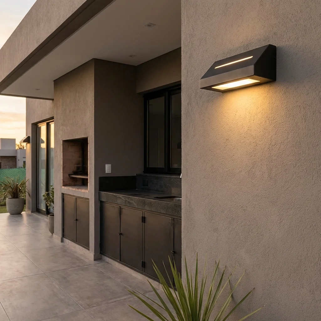 La fachada es la primera impresión. El Aplique Ext. Castello cambia lo que ven todos antes de entrar. Aluminio de fundición, acabado Negro mate y óptica precisa — diseñado para resistir y destacar a la vez.