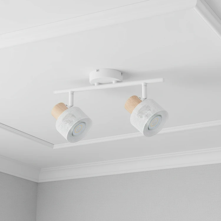 Apliques de Luz Techo Modernos | Tulipa Calada Blanco Madera | 2xGU10