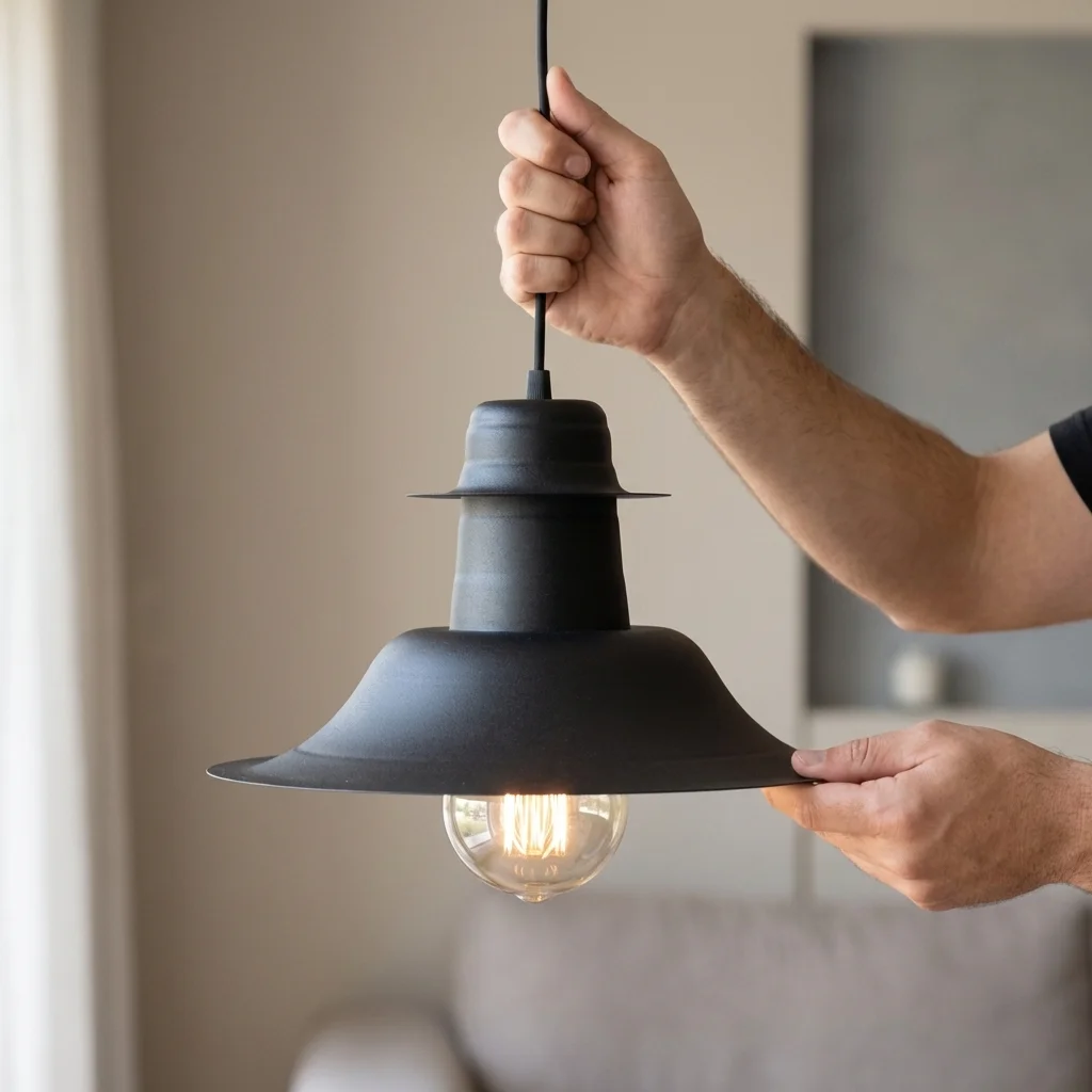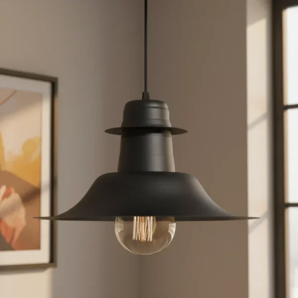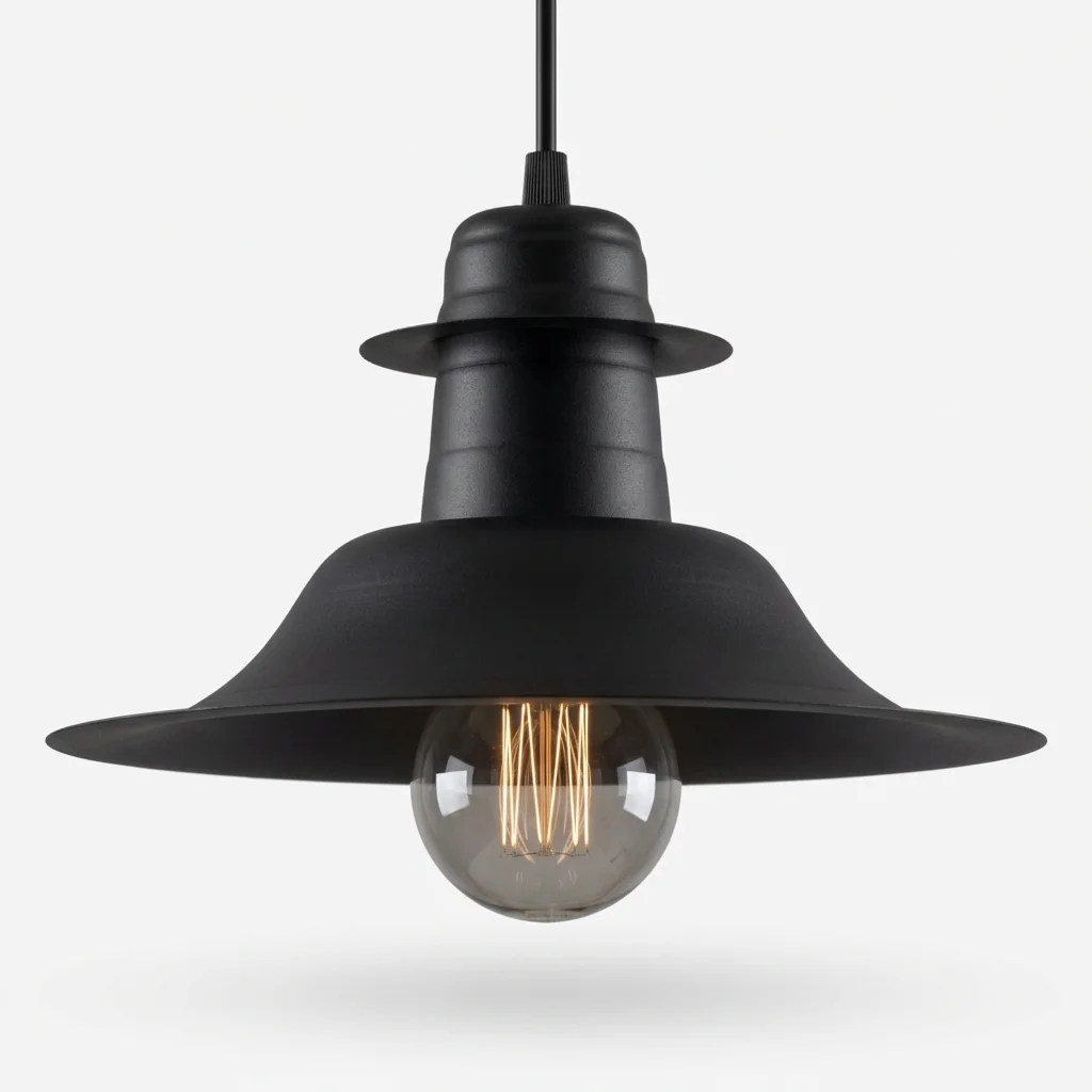 Colgante Belvedere — Sombrero industrial chapa negra E27
