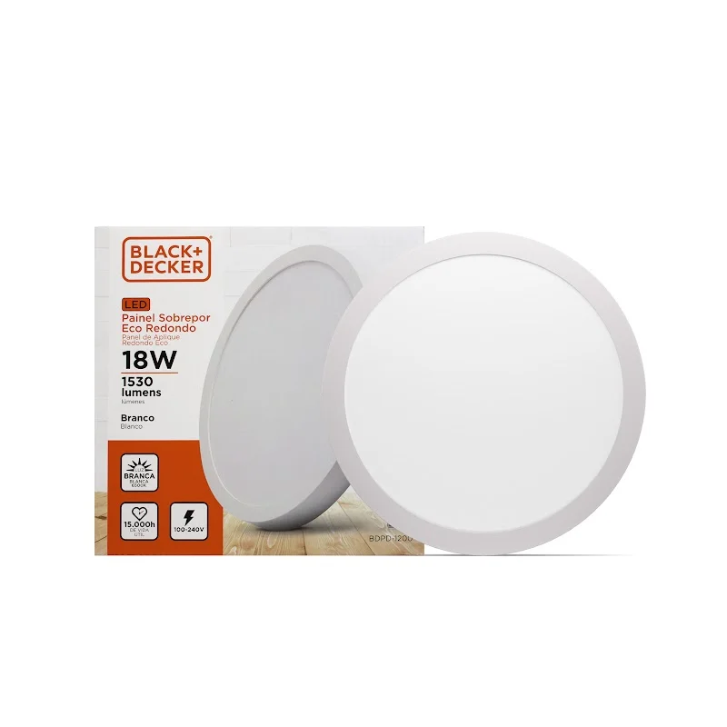 Plafón de Sobreponer 18w Negro Redondo Luz Fria