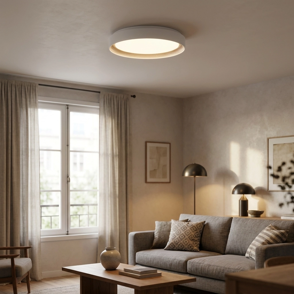 Plafon Drëval — Acrílico moderno, luz envolvente cálida (LED)