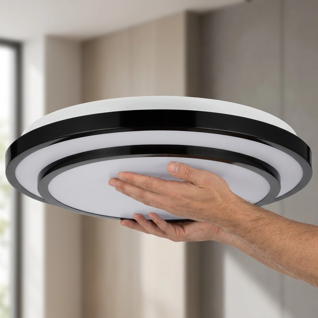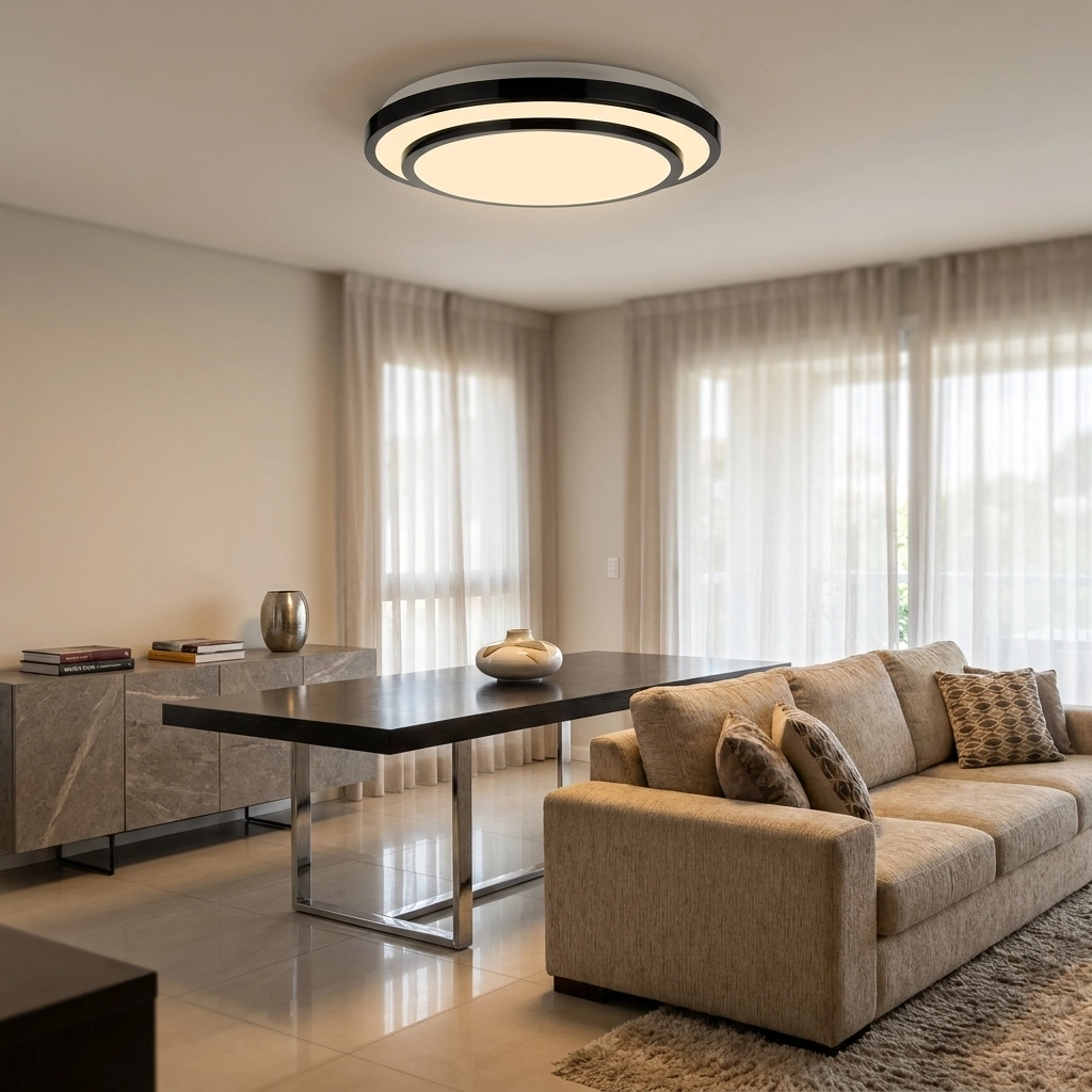 Plafon Brünn — Triple metal negro, acento cromo (LED)